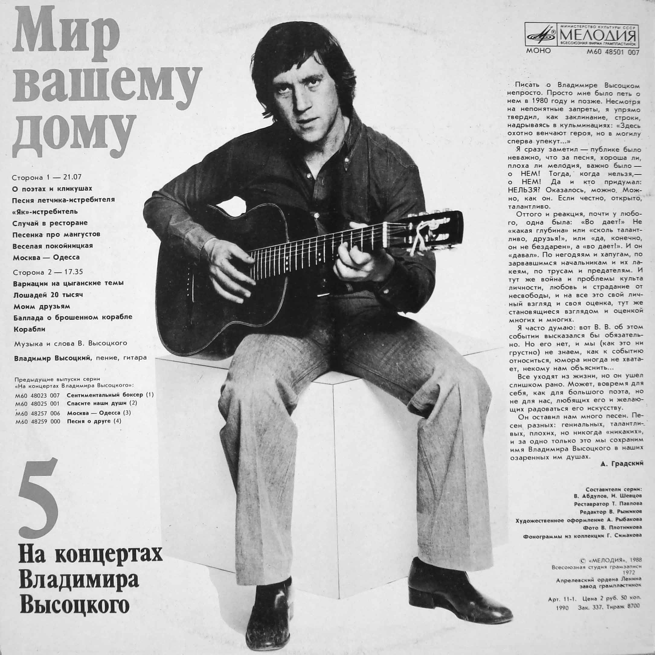Index of /Radio/Владимир Высоцкий/На концертах Владимира Высоцкого - 21 выпуск. Оцифровка с винила/05. Мир вашему дому/Covers/