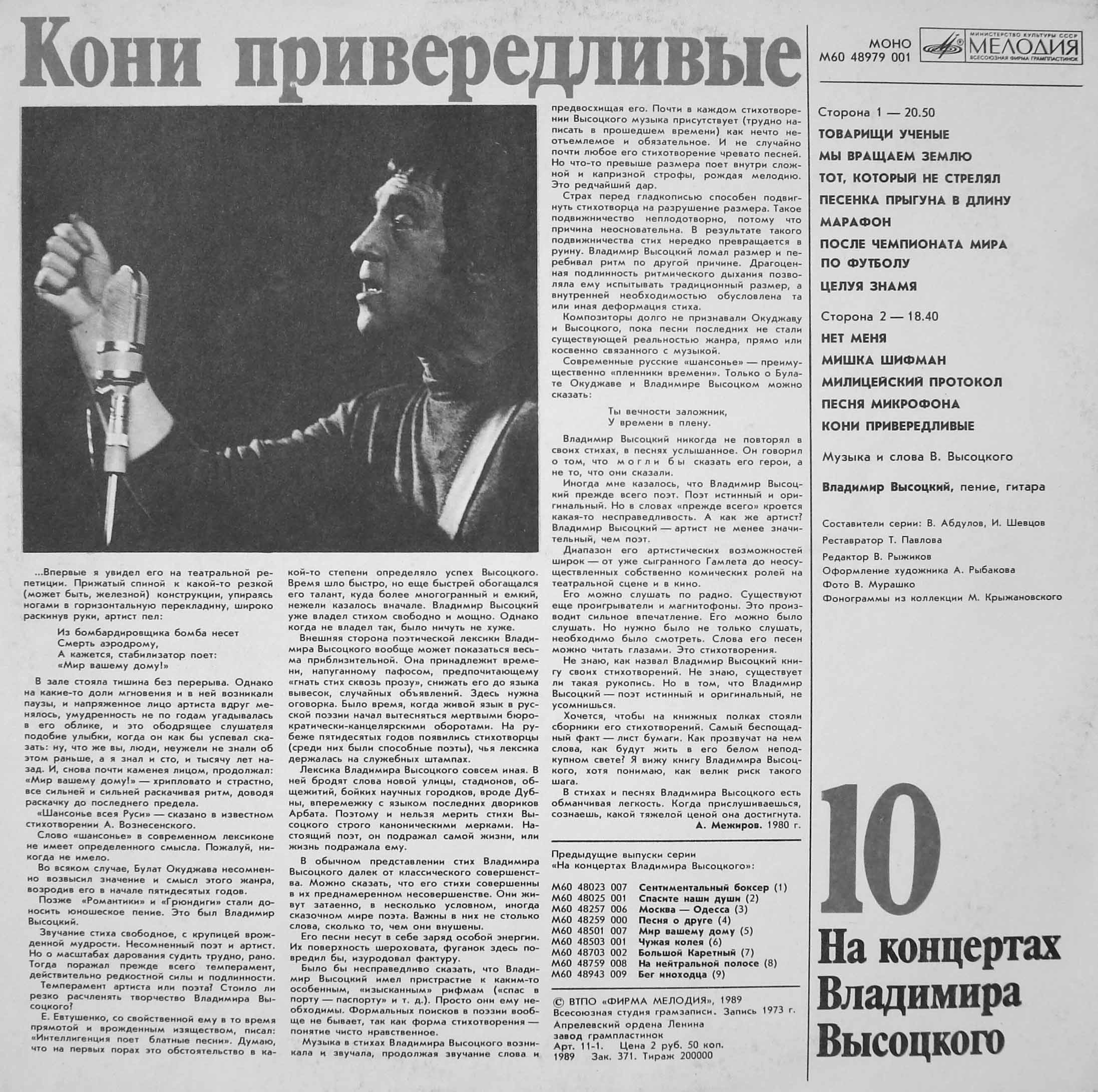 Index of /Radio/Владимир Высоцкий/На концертах Владимира Высоцкого - 21 выпуск. Оцифровка с винила/10. Кони привередливые/Covers/